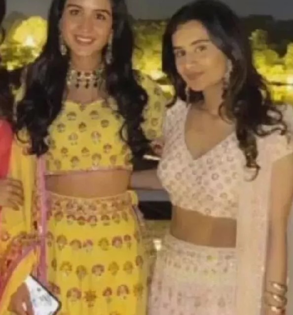 Radhika Merchant was seen posing with janhvi kapoor at her friend's wedding and looked beautiful in a yellow lehenga.