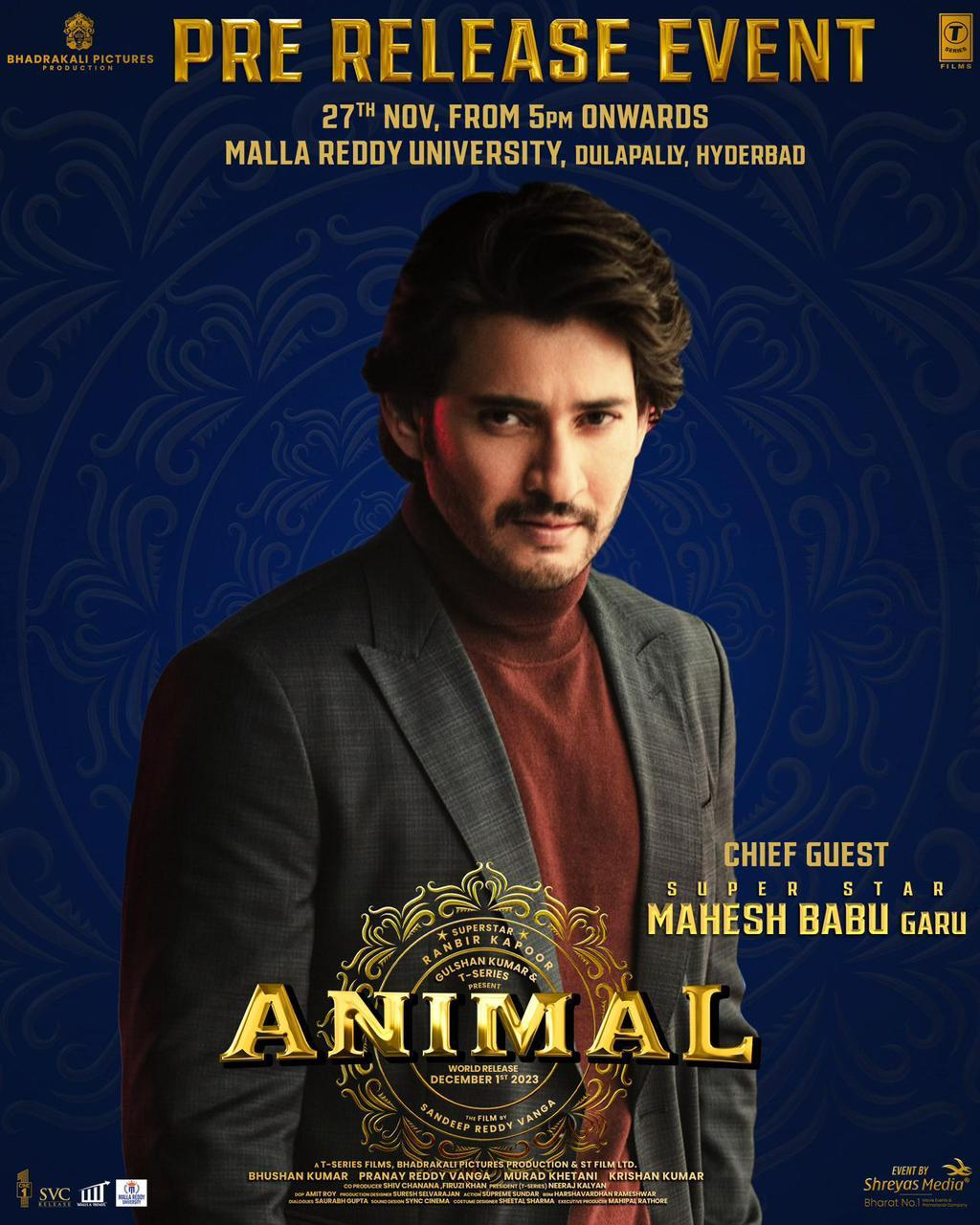 ఇకపోతే తాజాగా ఈ చిత్ర బృందం ఈ సినిమా యొక్క ఫ్రీ రిలీజ్ ఈవెంట్ ను నవంబర్ 27 వ తేదీన సాయంత్రం 5 గంటలకు మల్లారెడ్డి యూనివర్సిటీ ... దూలపల్లి ... హైదరాబాద్ లో నిర్వహించనున్నట్లు అధికారికంగా ప్రకటించిన విషయం మనకు తెలిసిందే. ఇకపోతే తాజాగా ఈ మూవీ మేకర్స్ ఈ మూవీ యొక్క ఫ్రీ రిలీజ్ ఈవెంట్ కు సూపర్ స్టార్ మహేష్ బాబు ... ఎస్ ఎస్ రాజమౌళి ముఖ్య అతిథులుగా రానున్నట్లు అధికారికంగా ప్రకటించింది. మహేష్ , రాజమౌళి ముఖ్య అతిథులుగా  రానుండడంతో ఈ సినిమా ఫ్రీ రిలీజ్ ఈవెంట్ పై కూడా ప్రేక్షకులు ఆసక్తిని చూపిస్తున్నారు.