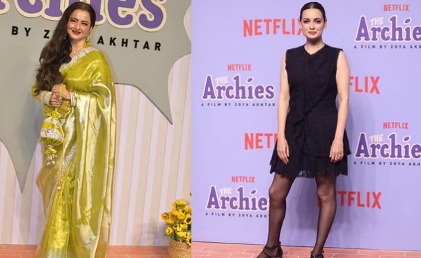The grand premiere event held last night was attended by celebrities like Rekha, aishwarya Rai Bachchan, katrina kaif, malaika arora, Janhvi Kapoor, and ananya Panday. Rekha, maintaining her love for sarees, carried a yellow tissue saree. Meanwhile, dia mirza chose a stylish black monotone dress for this event.