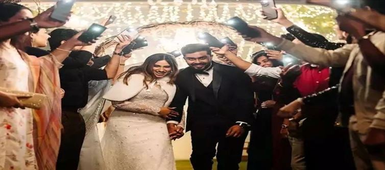 ജയറാമിന്റെ കുടുംബത്തിൽ ഇത് ആഘോഷത്തിന്റെ വർഷമാണ്. ഈ മാസം ഏഴാം തിയ്യതിയായിരുന്നു മാളവികയുടെയും നവനീതിന്റെയും വിവാഹ നിശ്ചയം. അതിന്റെ ഏതാനും ചിത്രങ്ങൾ നേരത്തെ താരപുത്രി സോഷ്യൽ മീഡിയയിലൂടെ പങ്കുവച്ചിരുന്നു. ഇപ്പോഴിതാ കൂടുതൽ ഫോട്ടോകളുമായി എത്തിയിരിക്കുകയാണ്. ക്രിസ്തീയ വധൂ - വരന്മാർ വിവാഹത്തിന് അണിഞ്ഞൊരുങ്ങുന്നത് പോലെയാണ് ചിത്രത്തിൽ മാളവികയും നവനീതും ഒരുങ്ങിയെത്തിയിരിക്കുന്നത്.ചില ചിത്രങ്ങൾ കണ്ടാൽ, ക്രിസ്തീയ ആചാരപ്രകാരമാണോ നിശ്ചയം നടന്നത് എന്നും തോന്നിപ്പോവും.