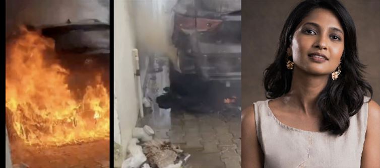 Actress Keerthy Pandian retweeted Saravanakumar's post and said, "This is Saravanakumar's car who lives next door. He has small children to old people in his house. What happens if there are old people... children... in this unexpected accident? It is very dangerous. So Please reply to his e-mail. He has ordered the MG company to behave responsibly. It is noted that the incident of this car catching fire has melted tamarind in the stomach of MG car owners.