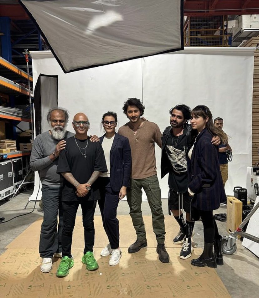 The actor shared a photo on his twitter platform, where he is seen stylishly sitting on a chair along with namrata and other members of the technical team. The folding chair on which Mahesh is sitting is highlighted in the picture. It's revealed that the ad shoot is related to Mountain Dew. Fans are impressed by Mahesh's dedication, and netizens are commenting on how Mahesh continues to increase his income even during the holidays.