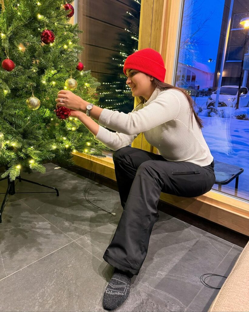 The newlyweds decided to take a one-of-a-kind trip and picked Lapland, Finland, as their honeymoon destination. The duo has been sharing photos of their chilly adventures while braving sub-zero temperatures of more than -10 degrees. The photographs show them fully clothed, mastering the art of skiing with surprising accomplishment and relishing the delight of learning a new talent together. In other lovely images, varun and Lavanya are seen engrossed in christmas festivities, flawlessly integrating the festive atmosphere with their romantic trip.