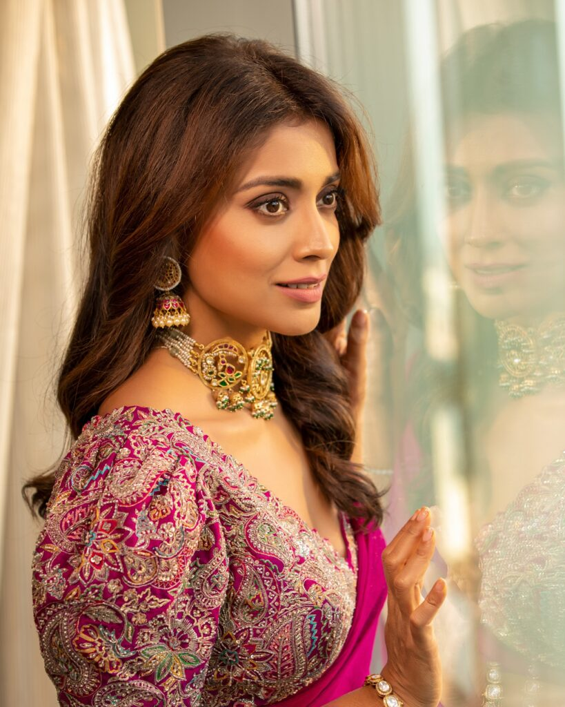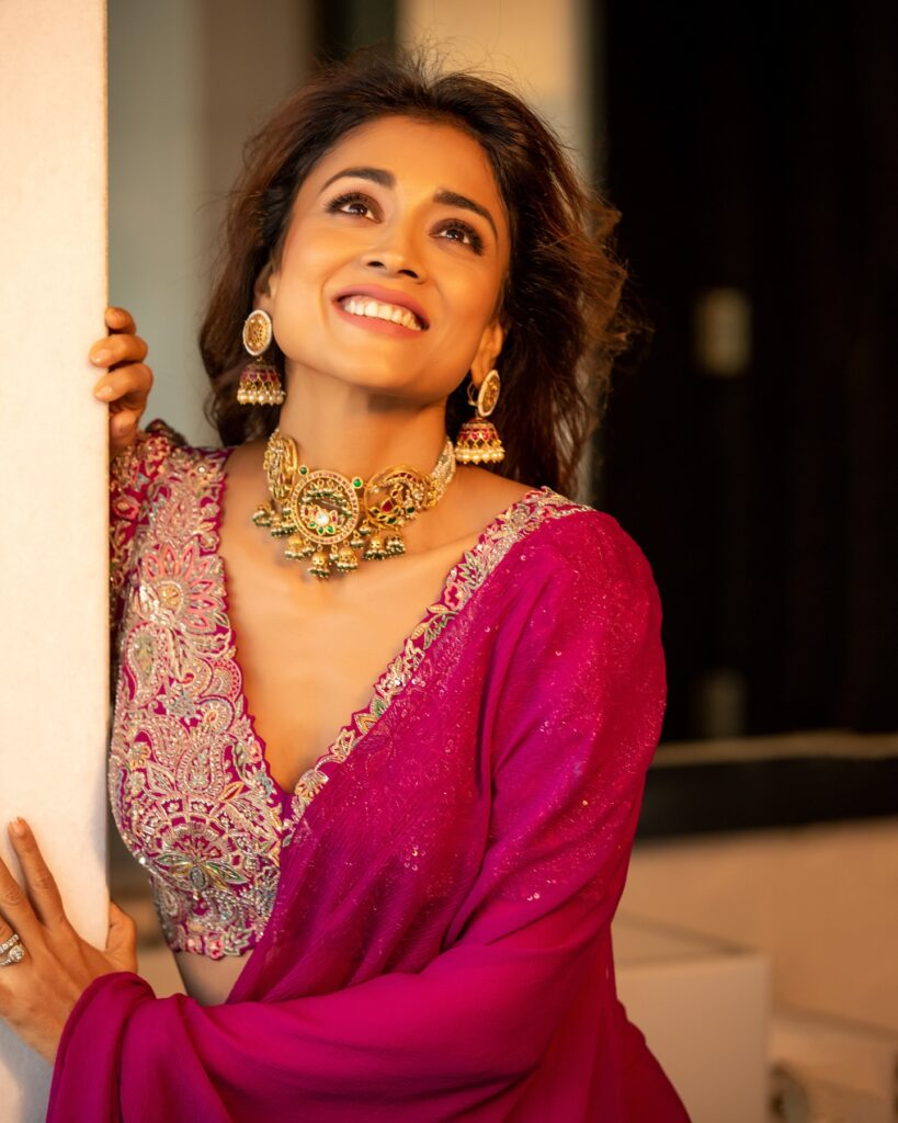 Shriya saran is one of the rare performers who still exudes beauty and gives us a youthful aura. The 41-year-old actress recently uploaded a series of photos on instagram in which she seemed polished and lovely. The actress attended the hyderabad Times Awards ceremony and drew a lot of attention to herself. The actress looked lovely in a pink saree with a matching knit-wear shirt.