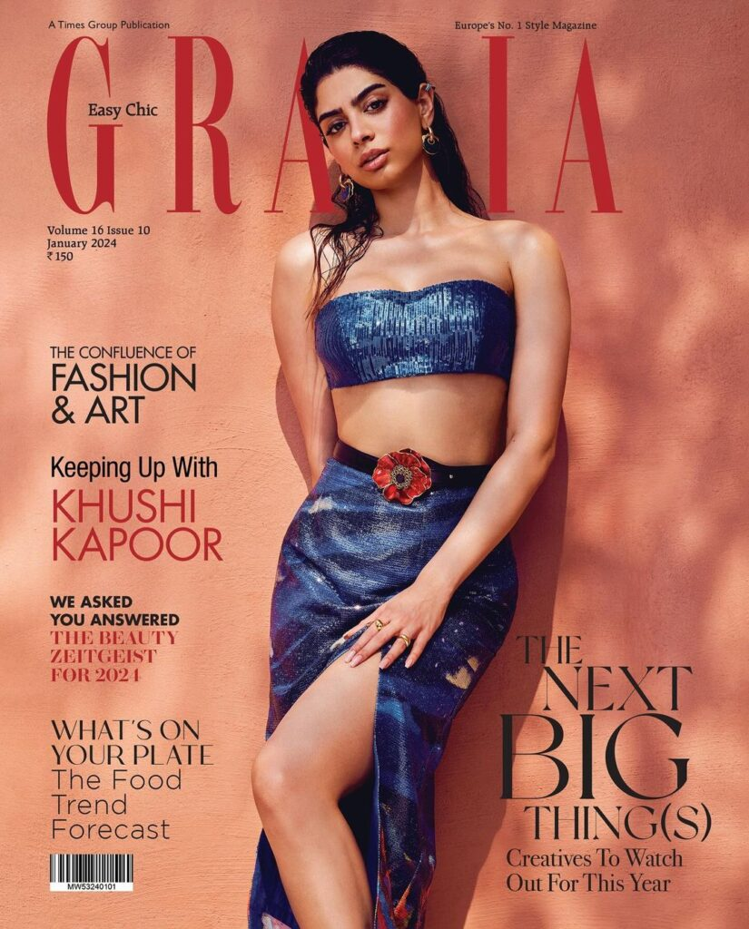 In a lovely turn of events, Khushi Kapoor takes front stage today, appearing on the cover of Grazia. The photograph catches her in a range of poses, dressed in wonderful designer outfits and exuding a lovely presence. This is a memorable moment for Khushi, who easily captivates with her beauty and grace. She is too hot to resist.