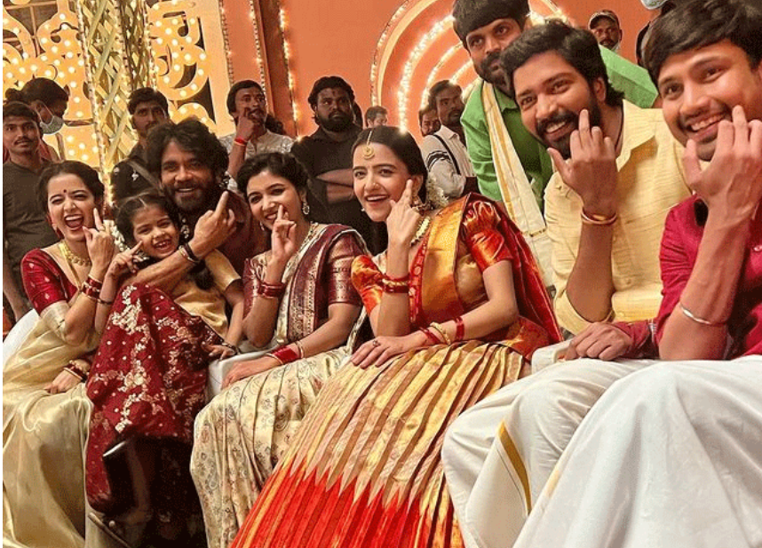 Nagarjuna and the team recently delighted fans by sharing a Sankranti-themed photo on Instagram. The image, posted by actor Rukshar Dhillon, captures the cast in festive costumes, and Dhillon expressed her excitement for the release of "Na Sami Ranga." She thanked nagarjuna for his unmatched love for movies and humility, expressing gratitude for the opportunity to work with such a wonderful team.