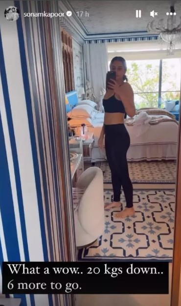 Actress sonam kapoor has revealed her weight loss target in a new instagram story uploaded after a workout. Bollywood actress sonam kapoor has always been vocal about her weight loss journey after pregnancy. She gave birth to their son Vayu in august 2022. It has been almost one and a half years since she became a mother and the actress has not compromised with her fitness. In her new instagram story, Sonam shared a post-workout reel and talked about her weight loss journey through maintaining fitness.