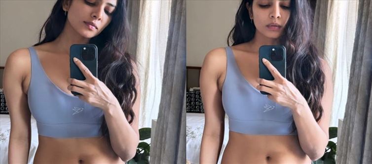 Malvika Mohanan looks stunning in her gym attire, showcasing toned abs with confidence. Wearing a sleek grey crop top and matching trousers, she exudes evident fitness and style. The actress skillfully balances comfort and appeal, making her gym look nothing short of stunning. Malvika's dedication to exercise is evident, and her exquisite attire sets a new standard for gym fashion.
