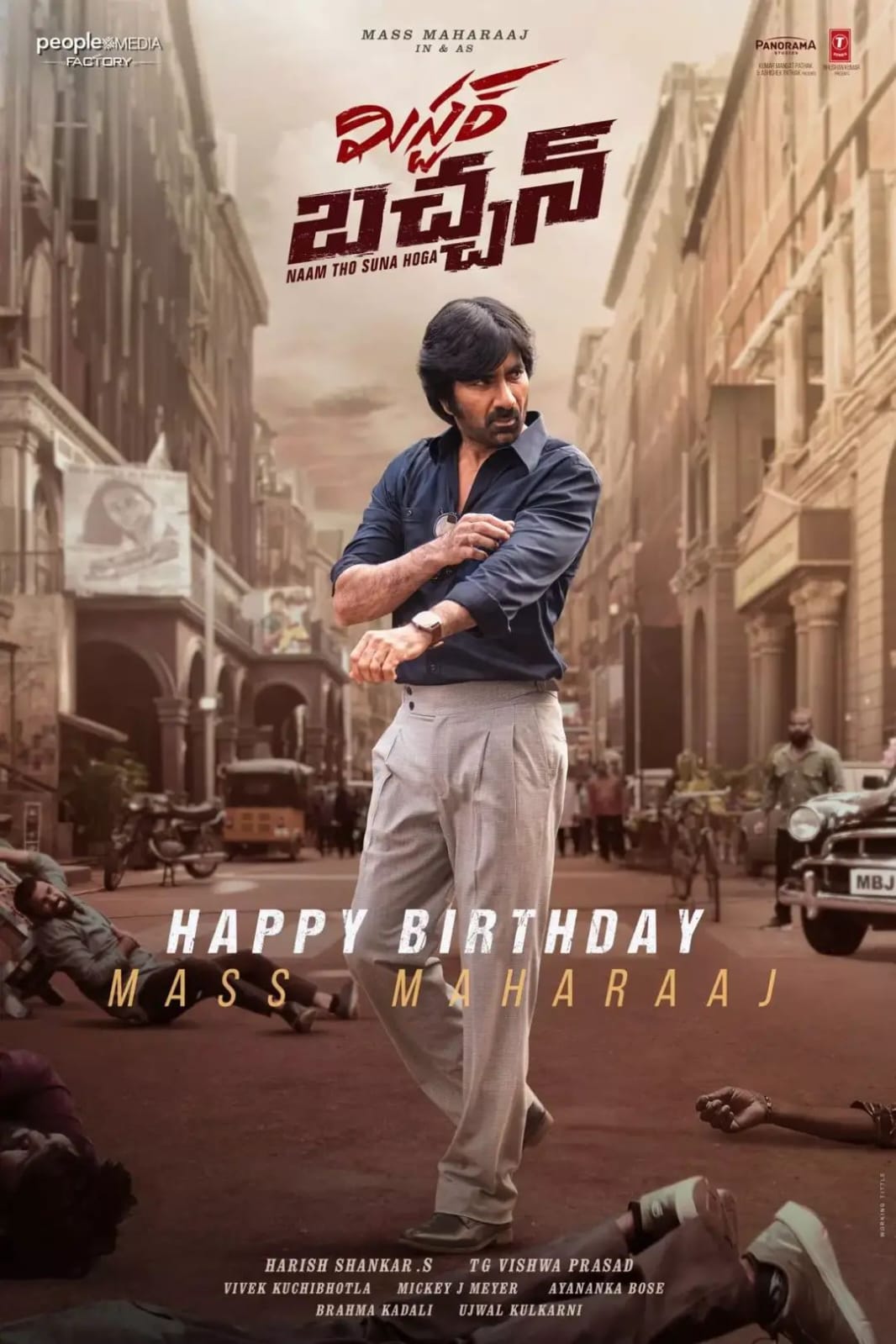 రవితేజకి పుట్టినరోజు శుభాకాంక్షలు చెబుతూ రిలీజ్ చేసిన ఈ పోస్టర్లో రవితేజ యాక్షన్ మోడ్ లో కనిపించడంతో ఆయన ఫ్యాన్స్ పండగ చేసుకుంటున్నారు. ఇంతకముందు రిలీజ్ చేసిన 'మిస్టర్ బచ్చన్' ఫస్ట్ లుక్ లో సూపర్ కూల్ గా కనిపించిన రవితేజ లేటెస్ట్ పోస్టర్ లో మాత్రం తనదైన మార్క్ మాస్ స్వాగ్ తో ఎంతగానో ఆకట్టుకుంటున్నాడు. ఈ పోస్టర్ ని చూస్తే సినిమాలో సూపర్ యాక్షన్ సీక్వెన్స్ లాగా కనిపిస్తోంది. ఈ పోస్టర్ లో రవితేజ ఓవైపు క్లాస్ గా బ్లూ షర్ట్, బ్యాగి ప్యాంట్ లో టక్ చేసుకొని తన మాస్ స్వాగ్ తో సూపర్ గా అదరగొట్టేసారు.రవితేజ వెనకాల వింటేజ్ కార్లు, పాత బిల్డింగ్స్ కనిపిస్తున్నాయి. ప్రస్తుతం ఈ పోస్టర్ సోషల్ మీడియాలో తెగ వైరల్ గా మారుతుంది. చాలా స్పీడ్ గా షూటింగ్ జరుపుకుంటున్న ఈ సినిమా లేటెస్ట్ షెడ్యూల్ ని కర్తెకుడిలో ప్లాన్ చేశారు. ఈ సినిమాలోని ప్రధాన సన్నివేశాల షూటింగ్ కోసం మూవీ టీం తాజాగా కరైకుడికి వెళ్ళింది. అక్కడి పరిసర ప్రాంతాల్లో మెయిన్ సీన్స్ షూట్ చెయ్యనున్నారు.ఈ సందర్భంగా డైరెక్టర్ హరీష్ శంకర్, రవితేజ కలిసి ఫ్లైట్ లో కర్తెకుడి కి వెళ్తున్న ఫోటోలను మూవీ టీం ఇప్పటికే సోషల్ మీడియా వేదికగా షేర్ చేసింది.
