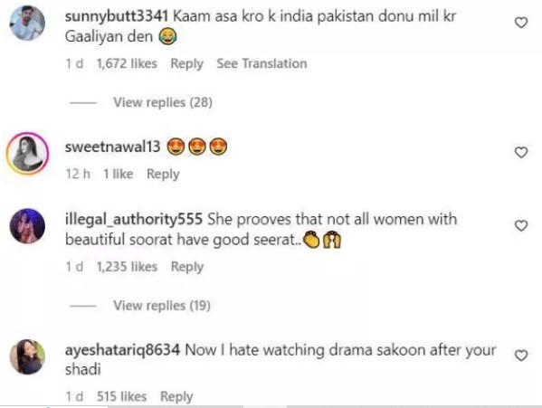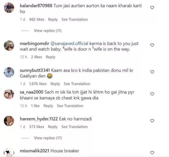 In the pictures posted by sana Javed on her instagram handle, she can be seen dressed in two different beautiful lehengas. However, instead of getting praise for her fashion choices, she became the target of trolling. netizens are continuously commenting on the post. Many users wished that her and Shoaib's marriage would end soon. At the same time, some reprimanded her for marrying Shoaib. See users' reactions here.