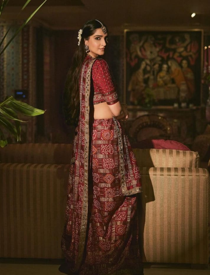 Sonam Kapoor dressed in her mother Sunita Kapoor's three-decade-old wardrobe, a ghar chola, for a recent occasion.