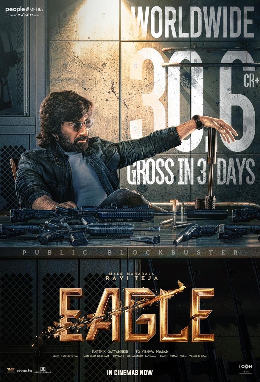 The movie, which generated positive buzz with its intriguing posters and teaser trailer, lived up to expectations by garnering solid collections on its first day, earning a spot among the highest-grossing openings in ravi Teja's career. "Eagle" has continued its success over the weekend, attracting full house audiences in many areas.