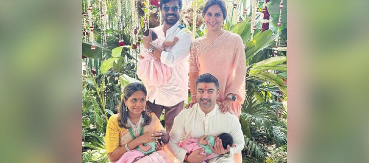 wherein ram charan, grinning broadly and obviously excited, embraces super royal Klin Kaara. Anush Pala and Armaan Ebrahim, the new parents, were spotted hugging their kids and grinning. For the whole family, it was an incredibly memorable event because of the scene's warmth and love. Upasana introduced the infants as the "power puff girls - amazing threesome" in her post. The family members all wore tasteful traditional clothing that highlighted their cultural background and gave the event a sense of elegance.