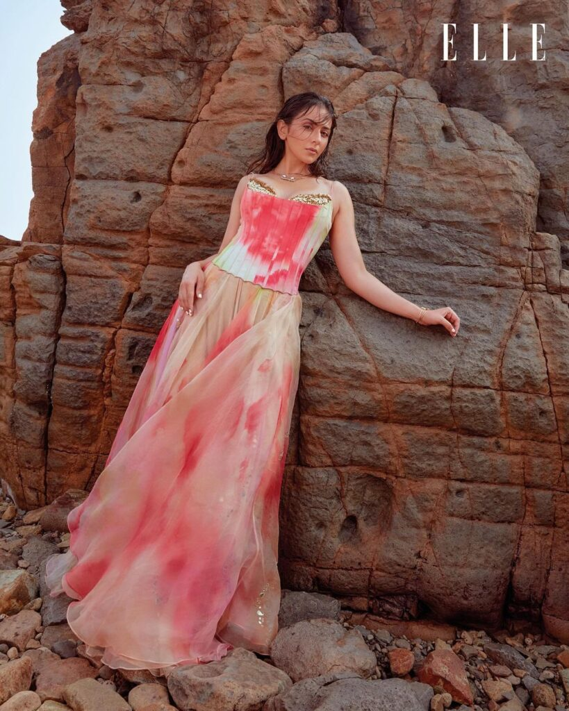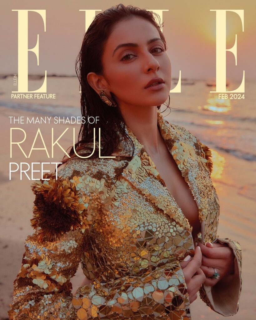 Rakul Preet Singh, a stunning beauty, is creating waves with her february 21st wedding. Her pre-wedding photos went viral on social media before the big day. She just posted photos from her cover photo session for Elle magazine, which increased the anticipation.