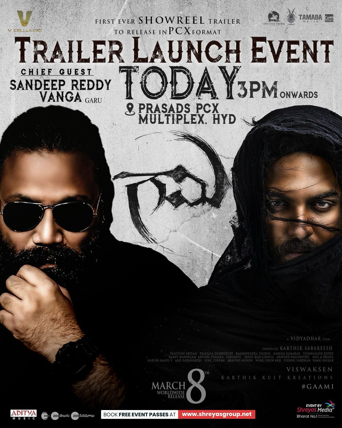 మాస్ కా దాస్ విశ్వక్ సేన్ తాజాగా గామి అనే సినిమాలో హీరో గా నటించిన విషయం మన అందరికీ తెలిసిందే. ఈ మూవీ ని మార్చ్ 8 వ తేదీన థియేటర్ లలో విడుదల చేయనున్నారు. ఈ మూవీ విడుదల తేదీ దగ్గర పడడంతో ఈ చిత్ర బృందం వారు ఈ సినిమా ప్రమోషన్ లను ఫుల్ జోష్ లో నిర్వహిస్తున్నారు. అందులో భాగంగా ఈ మూవీ బృందం వారు ఈ రోజు అనగా ఫిబ్రవరి 29 వ తేదీన ఈ సినిమా యొక్క ట్రైలర్ ను విడుదల చేయనున్నట్లు అధికారికంగా ప్రకటించారు. తాజాగా ఈ మూవీ బృందం వారు ఈ సినిమా ట్రైలర్ విడుదలకు సంబంధించిన మరో క్రేజీ అప్డేట్ ను విడుదల చేసింది.