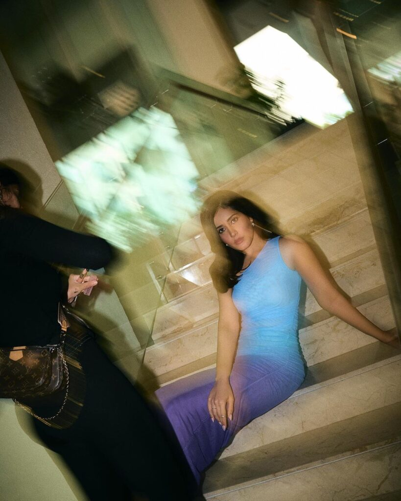 The actress turned to social media, where her alluring posture in a gorgeous blue bodycon dress with ruching set the internet on fire. The dress's one-shoulder silhouette beautifully accentuates Raashi's contours, and her open hair and simple golden earrings give her a polished but contemporary appearance.