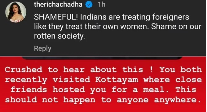 Richa Chadha has reacted to this incident by sharing a story on her Instagram. He wrote, 'Shameful, indians are treating foreigners the same way they treat their women. We are ashamed of such a society. Apart from Richa Chadha, actor and singer Dulquer Salmaan has also reacted to this shameful incident.
