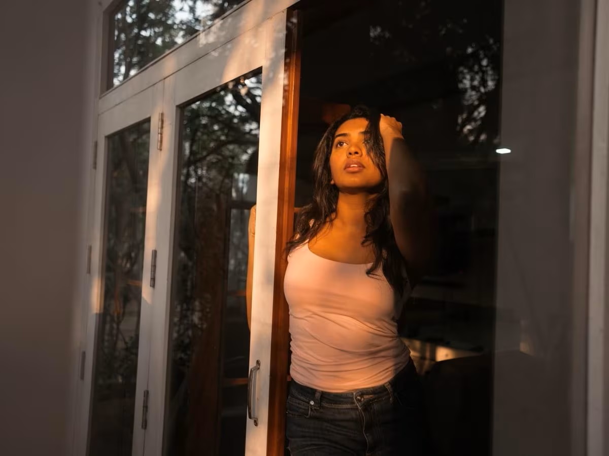 Shivathmika wore a simple white tank top and blue faded denim pants as her go-to outfit for the picture session. The actress lent intrigue to her appearance with her minimum makeup, which included drawn eyebrows, mascara-filled eyelashes, and a nude lip hue. She looked stunning in the photos, exuding peace and beauty, and her untidy, open hair accentuated her inherent attractiveness.