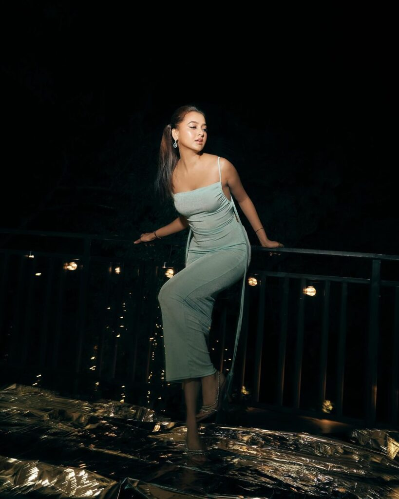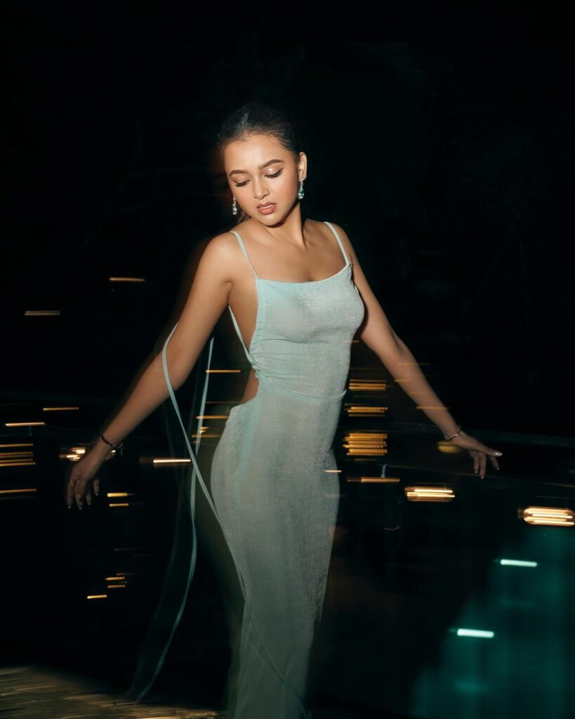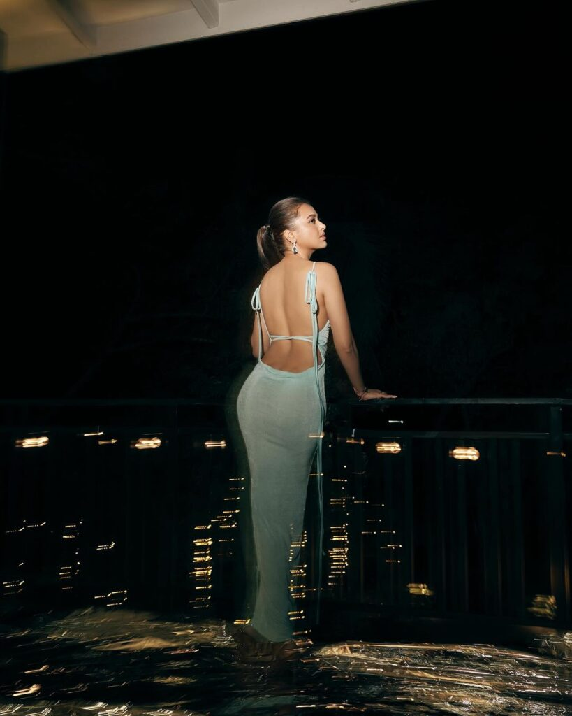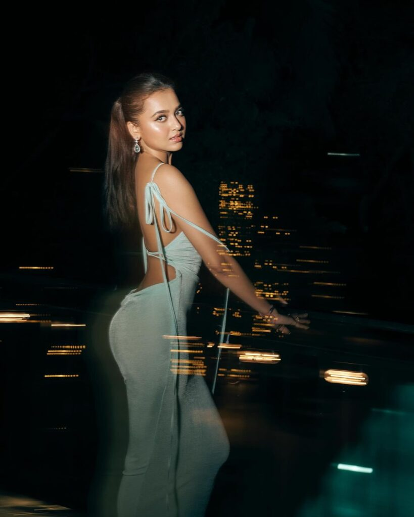 On Instagram, Tejaswi Prakash is putting on a show! The actress from bollywood recently posted a picture that has people drooling. She dazzles in an exquisite long emerald green dress with a daring backless style that leaves little room for interpretation. Tejaswi seems confident as she poses for the camera, and the matching jewelry and high ponytail elevate the whole ensemble. The internet will definitely go crazy over this shocking picture!