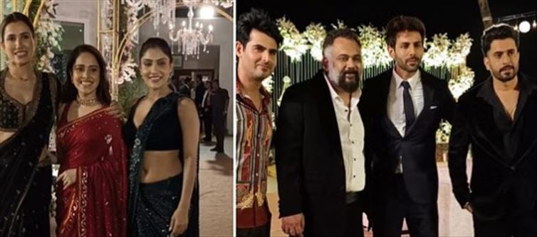 Many celebs including Nusrat Bharucha, Kartik Aryan, Luv Ranjan, Sonali Sehgal, ishita Raj Sharma, and Manjot Singh attended the wedding reception of Sunny Singh's sister navdeep Singh and ashish Pathak. All the stars were seen in different looks at the party. The entire team of the film 'Sonu Ke Titu Ki Sweety' was seen together at the party after many years, whose pictures are no less than a gift for the fans.