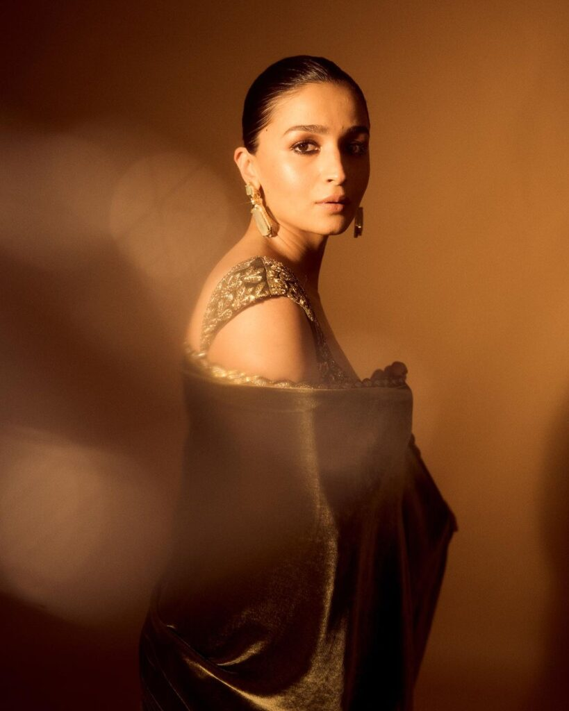 Following her impeccable Gucci Ancora pantsuit, alia Bhatt's fashion approach shifted to the timeless six-yard staple. manish Malhotra's ensemble, which features Bhatt, puts a stop to the long-running debate over velvet making a comeback. During the previous holiday season, preity zinta looked stunning in a black velvet dress with scalloped edges by Shaveta & Anuj, while Gen-Z chose sleek, cut-out bodycon dresses similar to ananya Panday's vivid blue alex Perry ensemble.