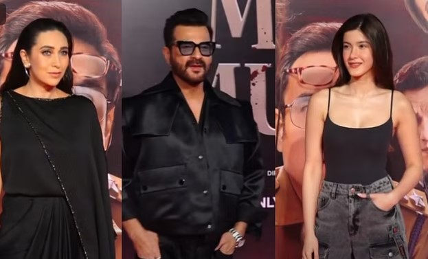 Beautiful 90s actress karisma kapoor is going to make a comeback in bollywood with 'Murder Mubarak'. Last night she was looking very beautiful in a black outfit. sanjay kapoor also attended the screening with his beloved daughter Shanaya Kapoor.