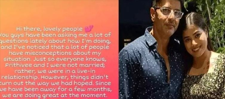 మా నిర్ణయాన్ని అందరూ దయచేసి గౌరవిస్తూ మాకు ఎటువంటి ఇబ్బందులను కలిగించొద్దండి అంటూ శితల్ పోస్ట్ చేసింది.. 1994లో మొదటిసారి బినాను వివాహం చేసుకున్నారు పృథ్వీరాజ్ వీరిద్దరికీ ఒక కుమారుడు కూడా జన్మించారు. అయితే గత కొంతకాలంగా అన్యోన్యంగా ఉన్న ఈ జంట మధ్య మనస్పర్ధలు రావడంతో వీరిద్దరూ విడిపోయారు. 2022లో చట్ట పరంగా విడాకులు తీసుకొని వేరువేరుగా ఉంటున్నారు ఆ తర్వాత కొంతకాలానికి ఒంటరిగా ఉన్న పృథ్వీరాజ్ శితల్ అనే అమ్మాయికి దగ్గరయ్యారు. కానీ ఇప్పుడు తాజాగా శితల్ తమకు వివాహం కాలేదని కేవలం మేమిద్దరం లివింగ్ రిలేషన్ లో ఉన్నామంటూ తెలియజేయడమే కాకుండా ఇప్పుడు ఆ బంధం కూడా తెగిపోయిందని చెప్పడంతో అందరూ ఆశ్చర్యపోతున్నారు.