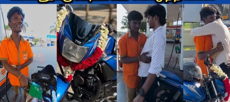 Bala, who got emotional after seeing these reels, fulfills the young man's wish by buying a bike and going to the petrol station to fill it with petrol and gives the bike as a gift to the young man. The young man, who was overwhelmed by the pleasant shock, hugged bala and thanked him in a daze and went for a bike ride with him. This video is currently going viral on the internet