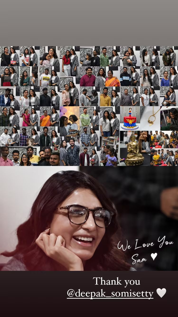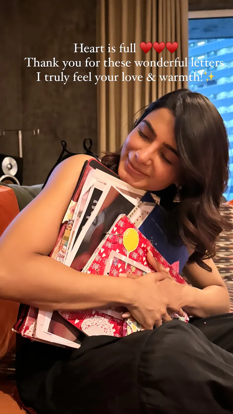Samantha Ruth Prabhu just had a meet-and-greet with her admirers, and she was showered with affection by them. She shared a picture of herself with them and expressed her gratitude for the handwritten note they gave her at the meeting. samantha is seen embracing the letters and closing her eyes in the widely shared image.
