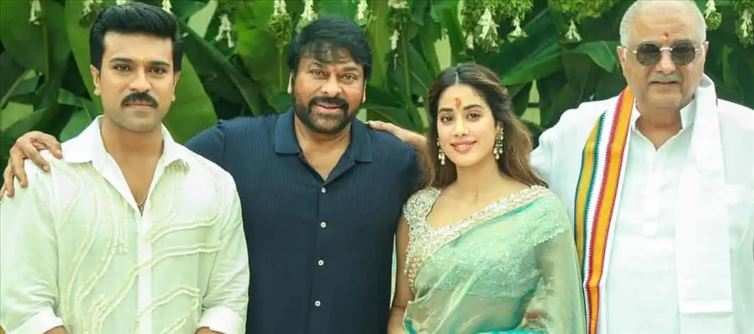 Today, janhvi kapoor and ram charan joined the muhurat for their unnamed movie, #RC16. The sight of ram charan and janhvi kapoor together at the movie premiere, flanked by chiru and boney kapoor, has been a visual feast for mega fans.