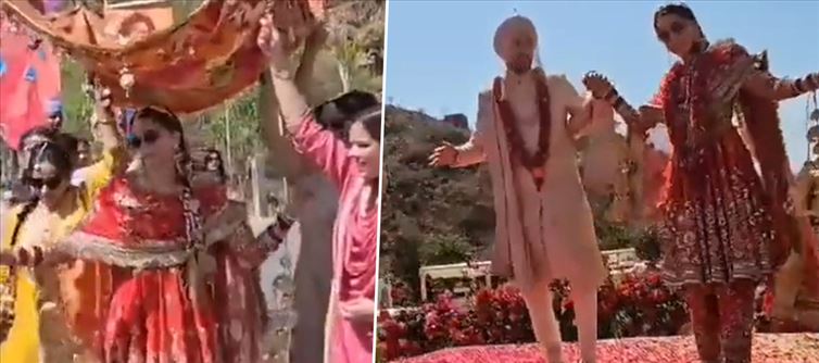 ఇప్పుడు తాజాగా తాప్సి, మథియాస్ బోయ్ పెళ్లి వీడియో ఒకటి సోషల్ మీడియాలో బయటకు రావడం జరిగింది.. ముఖ్యంగా ఎరుపు రంగు దుస్తులలో తలుక్ మని మెరిసింది తాప్సి.. ఎరుపు రంగు సాంప్రదాయమైన దుస్తులలో కూలింగ్ గ్లాస్ పెట్టుకొని డాన్స్ వేస్తూ మరి పందిరిలోకి వస్తున్నట్టుగా కనిపిస్తోంది.. పెళ్లికూతురుగా యమ జోష్ గా కనిపిస్తోంది.. తన కాబోయే భర్త స్టేజ్ మీద పిలవగానే వెళ్లి తన ప్రేమను వ్యక్తం చేస్తూ ఉన్నట్టుగా ఈ వీడియోలో కనిపిస్తోంది తాప్సి..