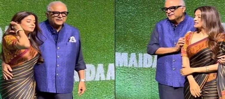 అయితే ఈవెంట్లో ఏకంగా ప్రియమణితో స్టార్ ప్రొడ్యూసర్ బోనీకపూర్ కాస్త అనుచితంగా ప్రవర్తించాడు అంటూ ఒక వార్త ప్రస్తుతం సోషల్ మీడియాలో వైరల్ గా మారింది. స్క్రీనింగ్ థియేటర్ వెలుపల అతిథులతో బోనీకపూర్ మాట్లాడుతున్న సమయంలో అక్కడికి ప్రియమణి వచ్చింది. అయితే ఆమెకు స్వాగతం పలికిన భోని కపూర్.. ఫోటోగ్రాఫర్ పోజులు ఇవ్వమని అడగడంతో ప్రియమణితో కలిసి ఫోటోకి ఫోజులు ఇచ్చాడు. ఈ క్రమంలోనే బోని ప్రియమణి భుజం సహా నడుముపై చేయి వేయడం కూడా ఈ ఫోటోలలో కనిపిస్తుంది. అయితే ఇది అటు అభిమానులకే కాదు నైటిజన్స్ కి కూడా అసలు నచ్చడం లేదు. ఏకంగా ప్రియమనిని బోనీకపూర్ అనుచితంగా తాకినట్లు సోషల్ మీడియా జనాలు విమర్శలు చేస్తున్నారు. అయితే మహిళలను బోనికపూర్ అనుచితంగా తాకాడు అంటూ అతన్ని నెటిజన్స్ విమర్శించడం కొత్తేమి కాదు.