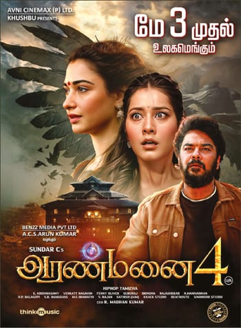 ఇది ఇలా ఉంటే "అరుణ్మనై 4" సినిమా కూడా తెలుగు లో విడుదల కానుంది. ఈ సినిమా తెలుగు లో "బాక్" అనే పేరుతో విడుదల కానుంది. ఇప్పటికే ఇందుకు సంబంధించిన అధికారిక ప్రకటన కూడా వెలువడింది. ఈ సినిమా యొక్క రెండు తెలుగు రాష్ట్రాల థియేటర్ హక్కులను ఏషియన్ సురేష్ ఎంటర్టైన్మెంట్ సంస్థ దక్కించుకుంది. ఈ విషయాన్ని కూడా ఈ మూవీ యూనిట్ ప్రకటించింది. ఇది ఇలా ఉంటే తాజాగా ఈ చిత్ర బృందం వారు ఈ సినిమాలోని తమన్నా , రాశి ఖన్నా క్యారెక్టర్ పోస్టర్ లను కూడా విడుదల చేశారు. ఈ మూవీ లో తమన్నా ... శివాని పాత్రలో కనిపించనుండగా రాశి కన్నా ... మాయ పాత్రలో కనిపించబోతుంది.  ఇకపోతే రాశి కన్నా ఇప్పటికే "అరుణ్మనై 3" లో హీరోయిన్ గా నటించింది.