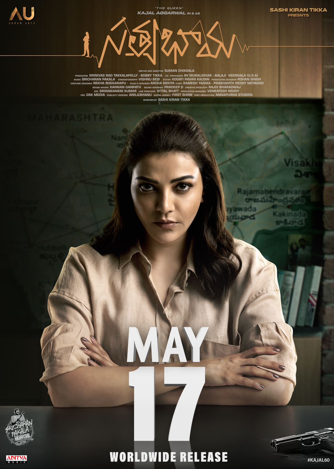తాజాగా ఈ మూవీ రిలీజ్ డేట్ ను అనౌన్స్ చేశారు మేకర్స్. మే17వ తేదీన ఈ సినిమాని రిలీజ్ చేయనున్నట్లు ప్రకటించారు. రిలీజ్ డేట్ పోస్టర్ తో పాటు ఓ సూపర్ గ్లింప్స్  ను కూడా రిలీజ్ చేశారు. పోస్టర్ లో కాజల్ అగర్వాల్ సీరియస్ లుక్ లో చాలా అందంగా కనిపిస్తోంది. బ్యాక్ గ్రౌండ్ చూస్తే ఆంధ్రప్రదేశ్ లోని విశాఖపట్నం, రాజమండ్రి, కాకినాడ, విజయవాడ మ్యాప్ కనిపిస్తోంది. అందులో తెలంగాణ స్టేట్ తో పాటు మహారాష్ట్ర బోర్డర్ కూడా ఉంది.  ఈ సినిమా టీజర్ చూస్తుంటే ఖచ్చితంగా థియేటర్లలో చాలా థ్రిల్లింగ్ కి గురి చేసేలా ఉంది. పైగా కాజల్ సినిమా అంటే ప్రత్యేకంగా చెప్పనవసరం లేదు. కాజల్ సినిమా అంటే మినిమం గ్యారెంటీ హిట్ అనే టాక్ ఉంది.