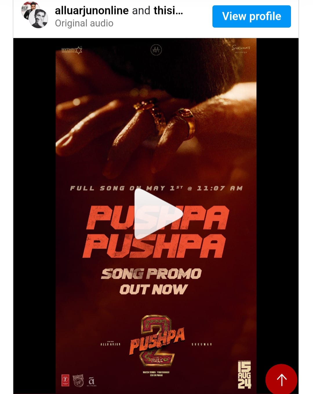 Sharing the update on social media, allu arjun captioned the post as "#Pushpa2FirstSingle “Pushpa Pushpa” will be out on May 1st at 11:07 AM.