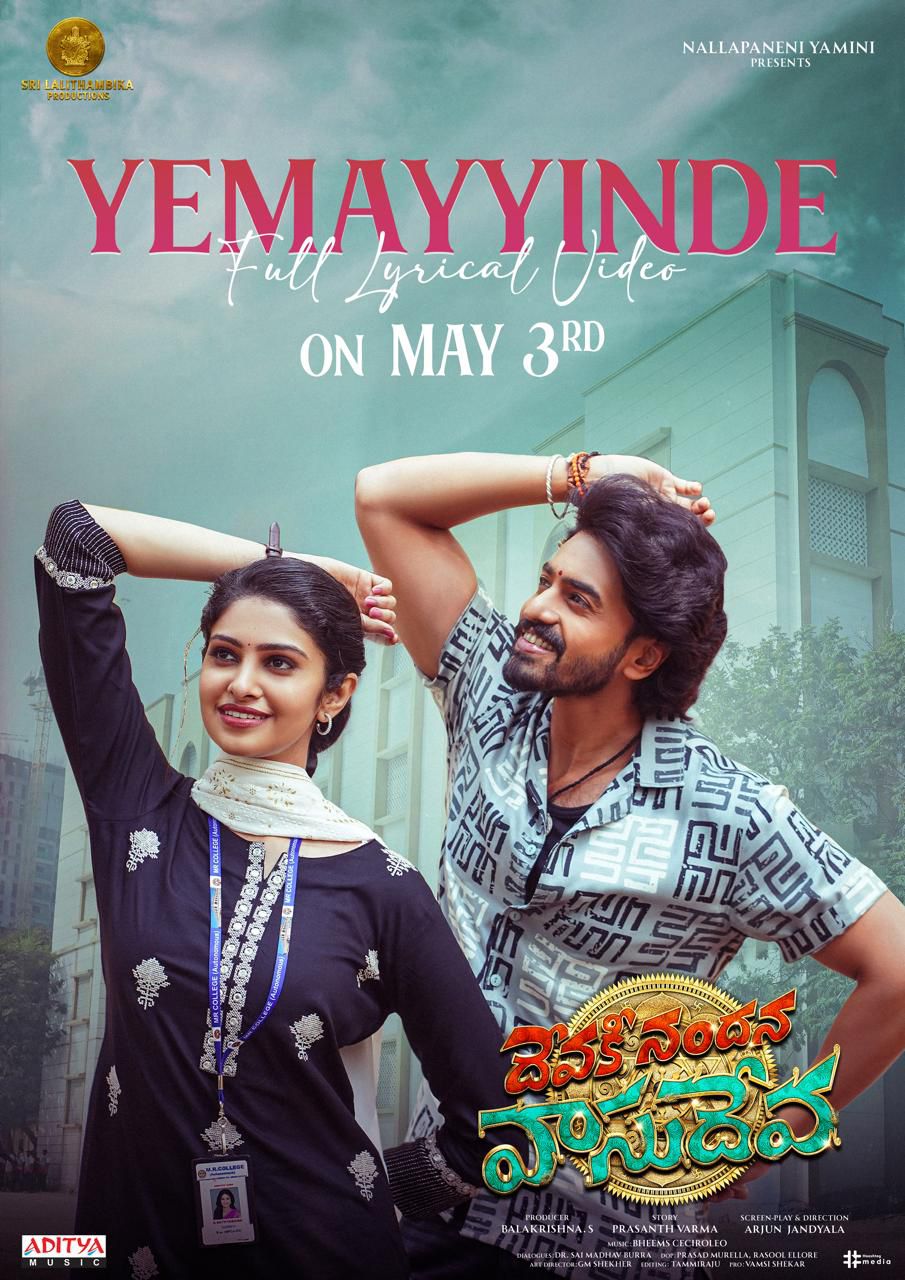 మూవీ కమర్షియల్ మాస్ ఎంటర్టైనర్ మూవీ గా రూపొందుతుంది. ఈ సినిమాకి ప్రసాద్ మూడేళ్ల "డి ఓ పి" గా పని చేస్తున్నాడు. ఇకపోతే తాజాగా ఈ మూవీ బృందం వారు ఈ సినిమాకు సంబంధించిన మొదటి సాంగు విడుదలకు సంబంధించిన ఓ క్రేజీ అప్డేట్ ను ప్రకటించారు. "ఏమయిందే" అంటూ సాగే ఈ మూవీ లోని మొదటి ఫుల్ లిరికల్ వీడియోను మే 3 వ తేదీన విడుదల చేయనున్నట్లు ఈ మూవీ బృందం వారు తాజాగా అధికారికంగా ప్రకటిస్తూ ఓ పోస్టర్ ను కూడా విడుదల చేశారు. ప్రస్తుతం ఆ పోస్టర్ సోషల్ మీడియాలో ఫుల్ గా వైరల్ అవుతుంది. ఇది  ఇలా ఉంటే హీరో మూవీ తో వెండి తెరకు పరిచయం అయ్యి యావరేజ్ విజయాన్ని సొంతం చేసుకున్న అశోక్ "దేవకి నందన వాసుదేవా" మూవీ తో ఏ స్థాయి విజయాన్ని అందుకుంటాడో చూడాలి.