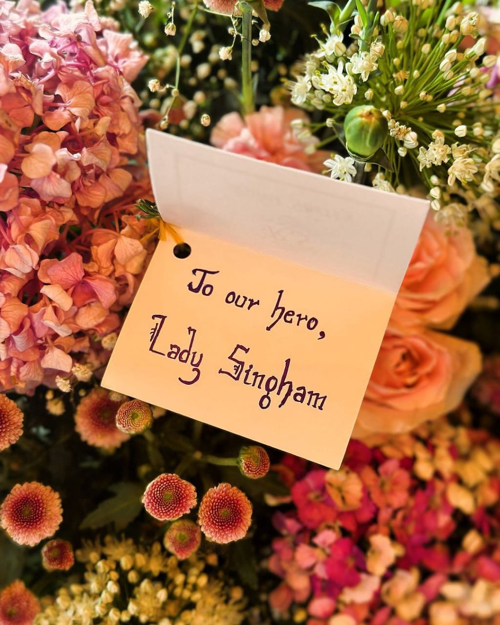 Earlier, deepika had shared a photo in which a note was written amidst red, yellow, and pink flowers. This beautiful note reads 'For our hero, Lady Singham'.
