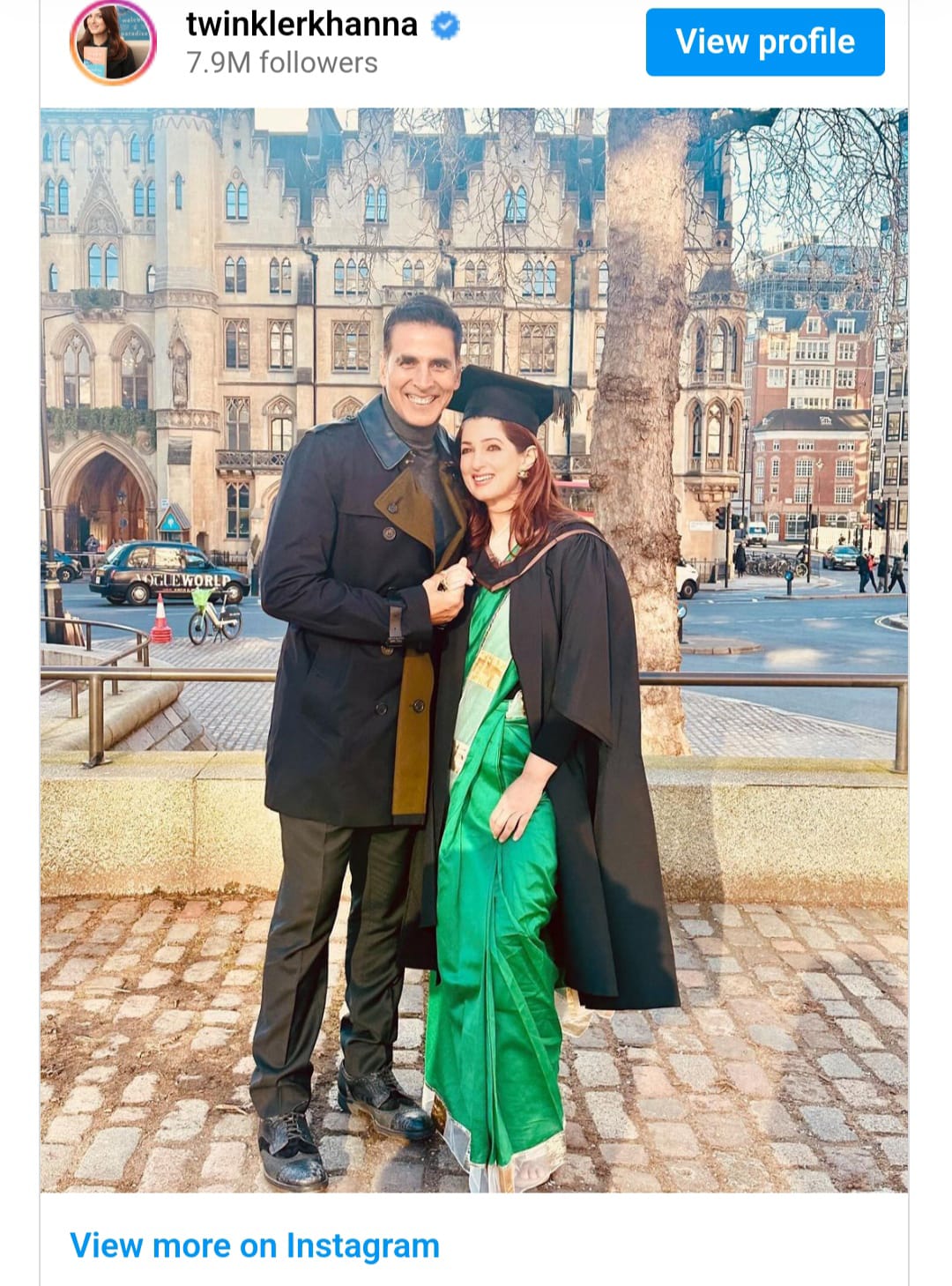 Former actress and author twinkle khanna recently completed her Masters from the university of London.