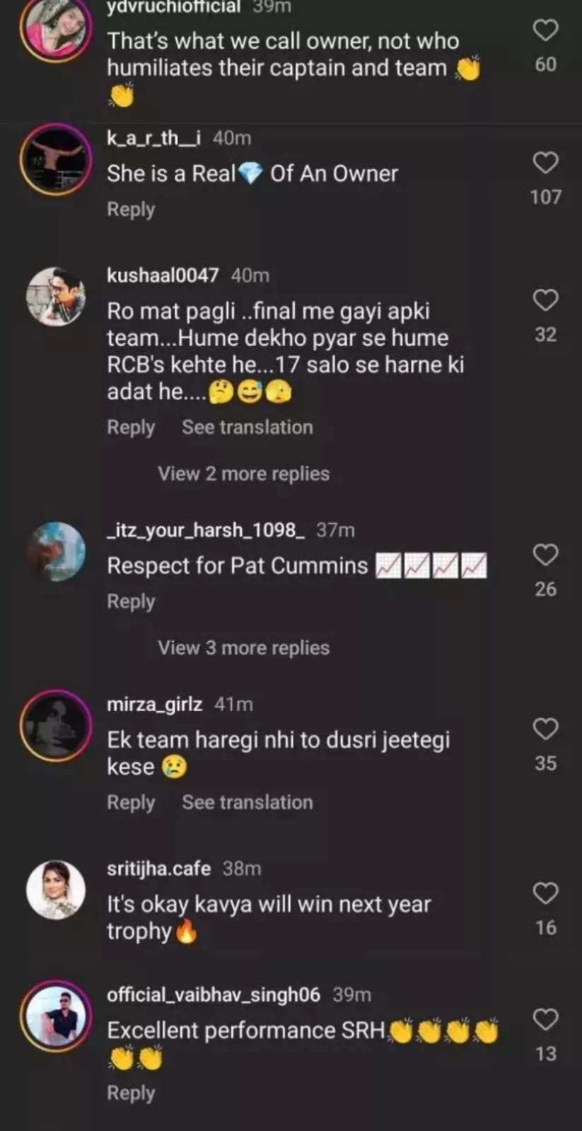 As soon as the glimpses surfaced on social media, netizens flooded the comments section of the post, praising Kavya Maran for supporting the SRH players. "This is what we call honor, not someone who disrespects his captain and team," wrote a netizen while many others consoled her by asking her to stay strong. Check out the reactions of the users here.