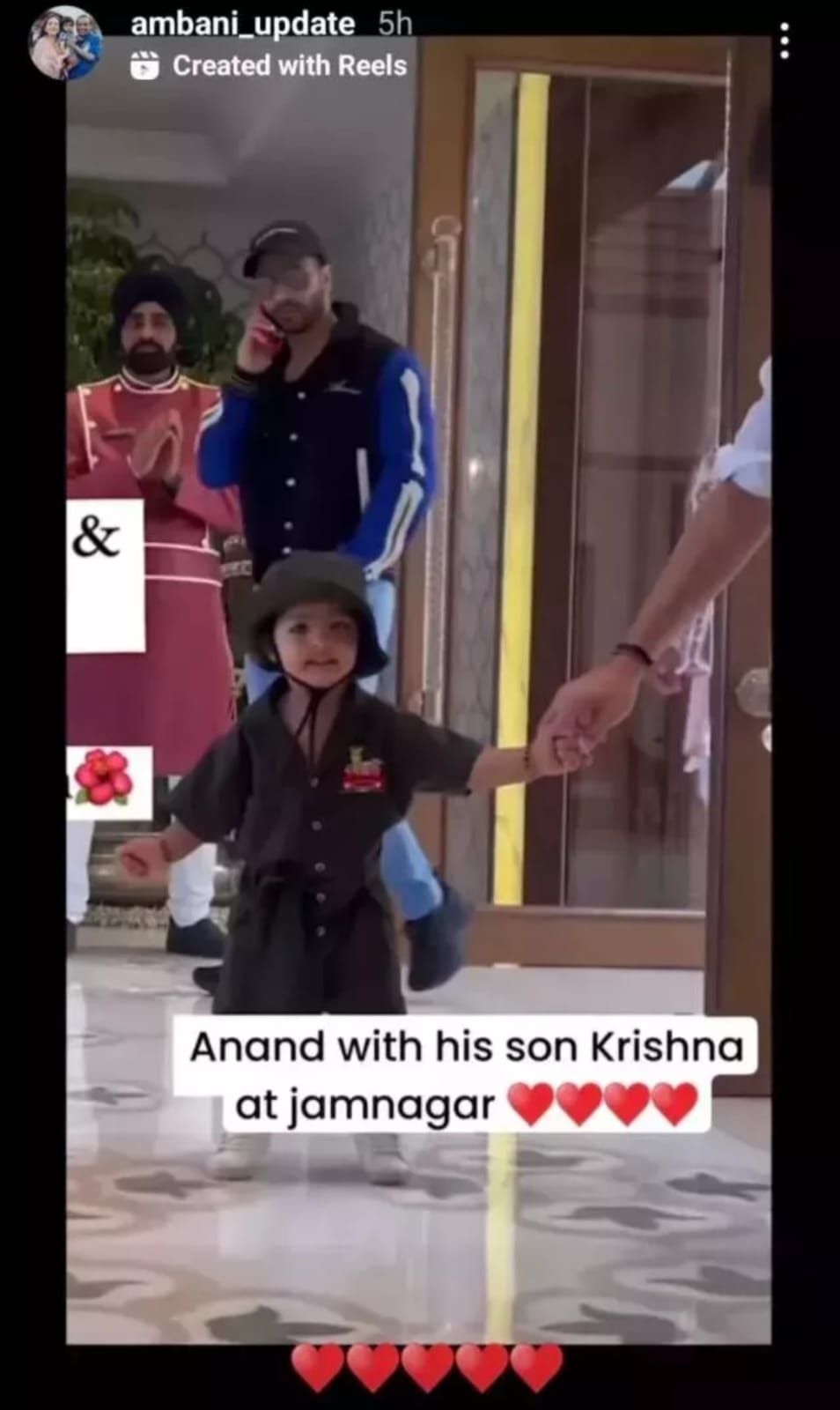 Recently, Ambani's fan page shared an adorable video in which Anand Piramal is seen with his son Krishna. The video was reportedly shot during one of Ambani's events in Jamnagar. The lad was seen dancing to the beats of dhols while the loving daddy was seen holding his hand. anand looked extremely handsome in beige-coloured shorts paired with a white shirt. On the other hand, krishna looked cute in a sage green co-ord set with a matching cap.