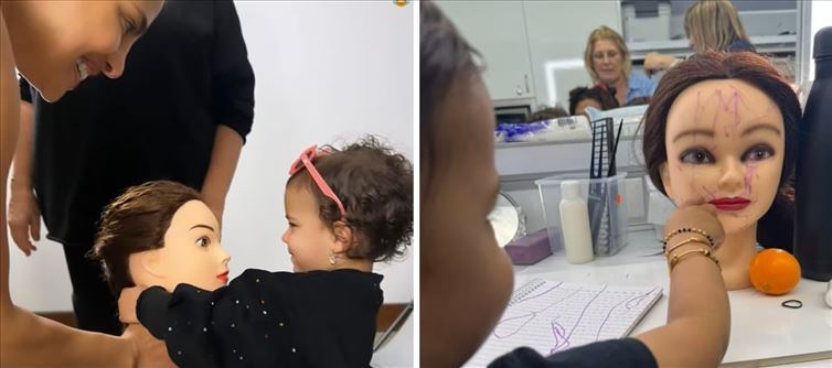 Malti was seen holding the hair brush in the second photo. Malti was on the ground in the next photo, attempting to tie a knot with a large rope. "Working on her seaman knots," priyanka captioned the photo. In the final image, Malti was seen grinning at the mannequin and cradling her head. Additionally, priyanka was spotted grinning at Malti while holding it in front of her. She captioned the photo with a joke, "I think 'Diane' is coming home with us."