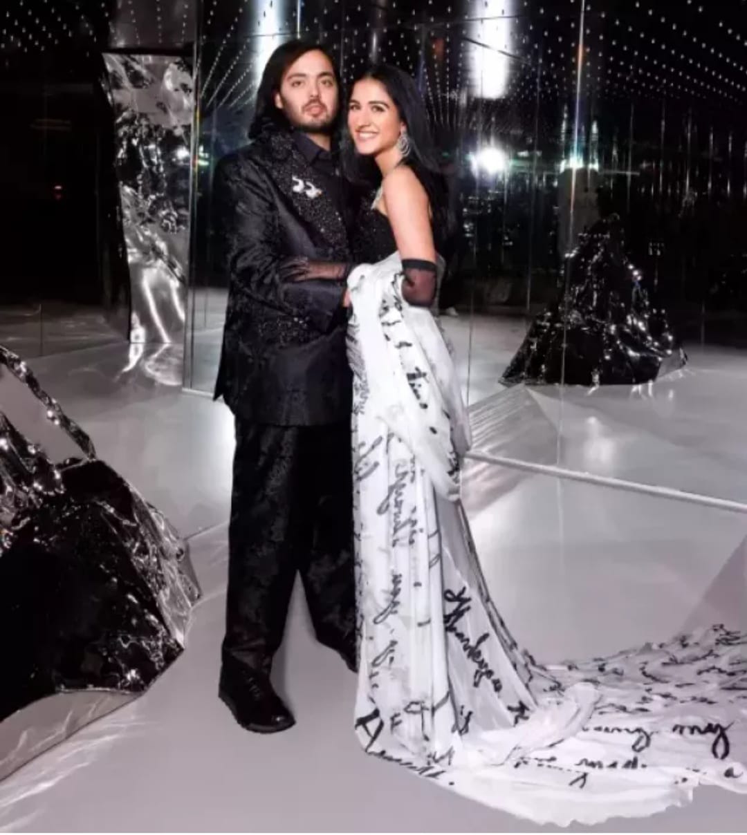 The Ambani family started their second pre-wedding celebration for Anant and radhika on 29th May 2024. After lunch on the cruise, a 'starry night' event was organized, in which radhika surprised everyone with her dress. Keeping up with the 'Western formal' dress code, radhika wore a chiffon gown designed by Robert Vuong, on which love letters written to her by Anant were printed.
