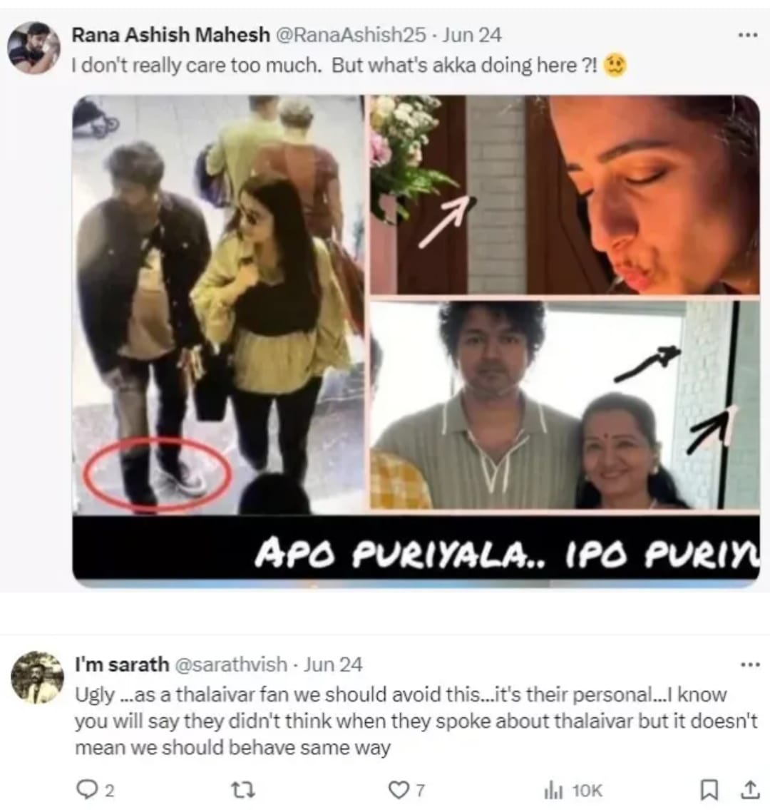 Now, as soon as trisha shared this birthday post for Vijay, fans started reacting to it and speculated that they might be secretly dating. Fans on 'X' shared a collage of some photos of trisha with Vijay in which the two were together. Fans claimed that these photos were clicked abroad. Not only this, fans also noticed Vijay's shoes, as the same shoes were seen in one of Trisha's photos. Now, sharing these pictures, fans said that trisha and Vijay are secretly dating each other.