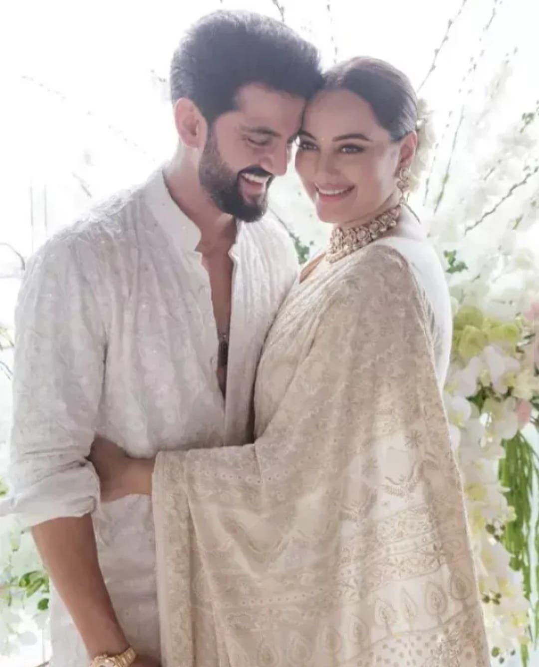 Bollywood actress sonakshi sinha had a registered wedding with zaheer iqbal at her home on 23 june 2024 in a simple wedding ceremony , the glimpses of which are still in the news. After this, they hosted a reception party for their friends and close ones. 3 days after the wedding, the couple enjoyed a dinner date with their family, which was the first public appearance of Zaheer and Sonakshi as a newly married couple.