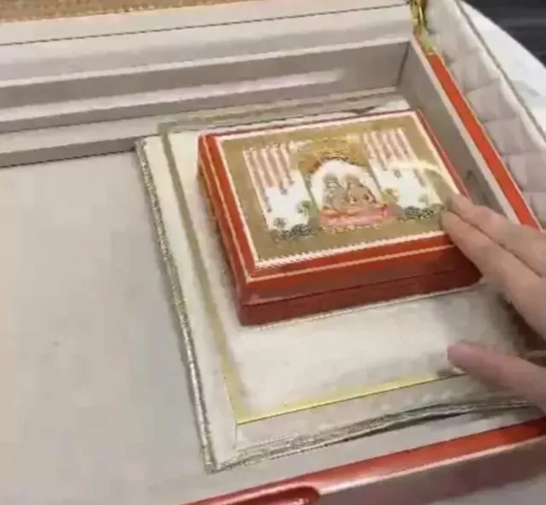 Further, inside the box, we can see a small red box with a picture of Radha-Krishna. When opened, it turns out to be a foldable silver temple with deities. Not only this, Ambani has also sent a beautiful dorukha pashmina shawl for all the invitees, which can be worn on both sides.