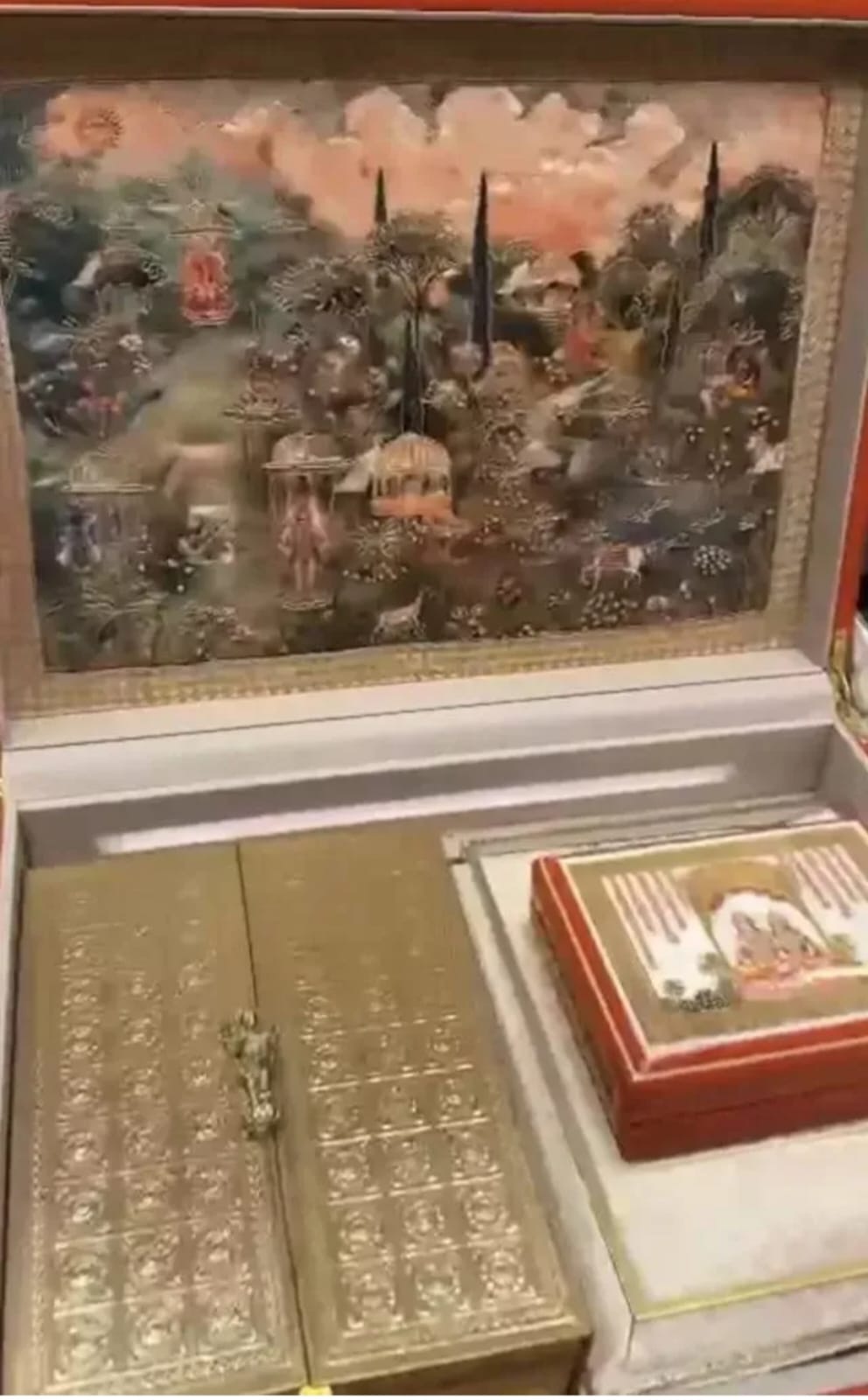 Anant Ambani Radhika's wedding invitation box has a foldable 'silver temple' and 'pashmina shawl'