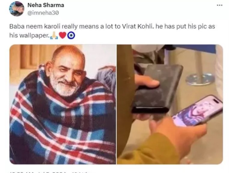 A fan shared Kohli's picture on twitter and wrote, "Baba neem Karoli means a lot to Virat Kohli. He has put his picture as his wallpaper." Another user said, "Virat kohli has neem Karoli Baba's wallpaper on his phone... jai Maharaj Ji." A third user commented, "Virat kohli has baba neem Karoli's wallpaper on his phone. A devotee."