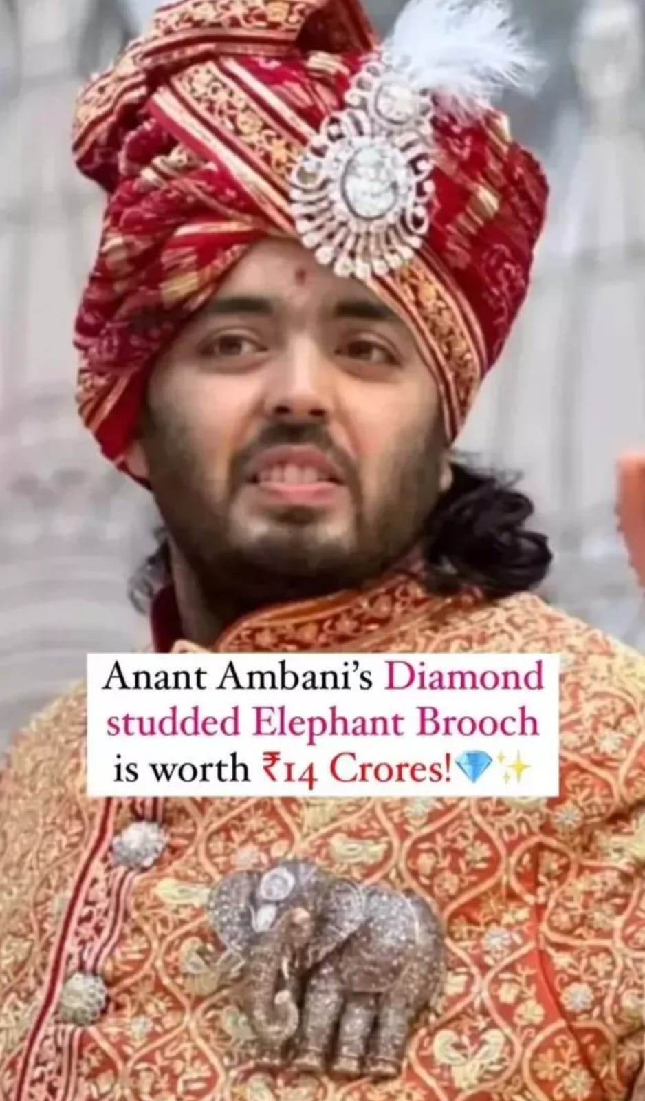 Anant Ambani wore an elephant brooch worth Rs 14 crores at his wedding, and the diamond-studded 'sarpech' on his turban attracted the attention