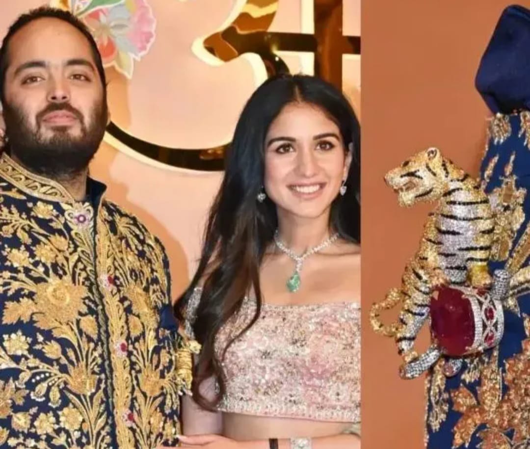 Anant Ambani flaunted a diamond embroidered Royal bengal tiger brooch at his sangeet ceremony