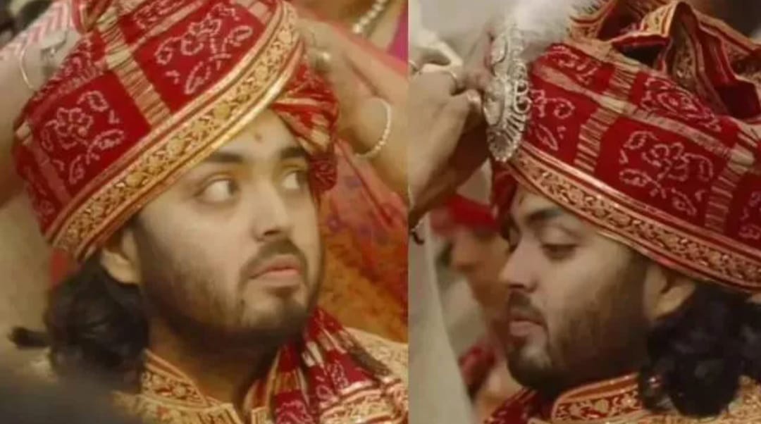 Anant Ambani wore a stunning solitaire diamond screech on his red turban